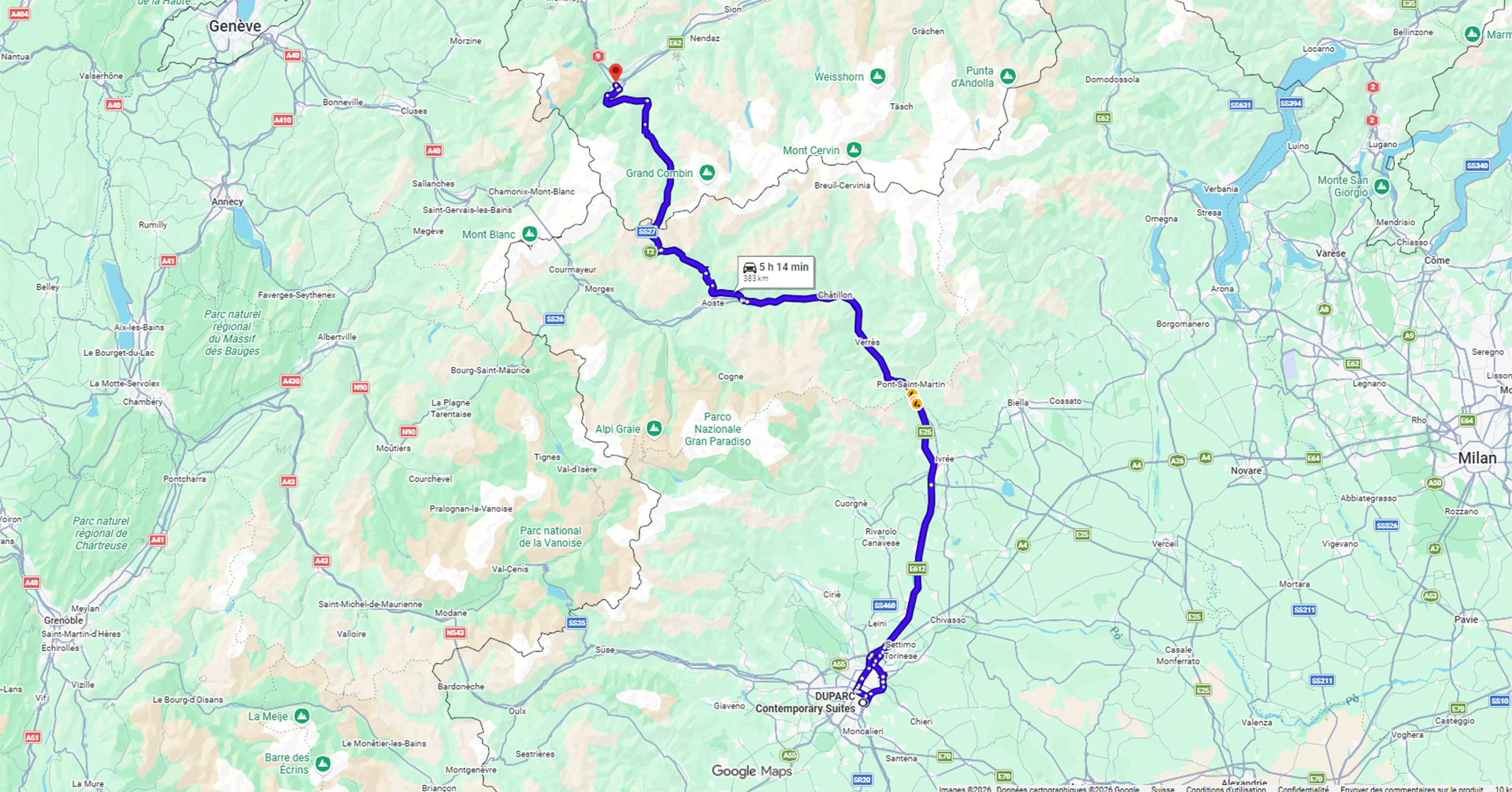 Nous avons logé au Duparc Contemporary Suites ****, un magnifique hôtel au cœur du parc Valentino, non loin du centre et bénéficiant d’un parking. Les chambres faisant un minimum de 50m2. Le budget pour 1 nuit et 2 personnes, selon votre choix, se situait entre 190 CHF pour la chambre double et 288 CHF pour la chambre triple. A cela s’ajoute le parking fermé/sécurisé à 24 CHF par nuit et les taxes de séjour.