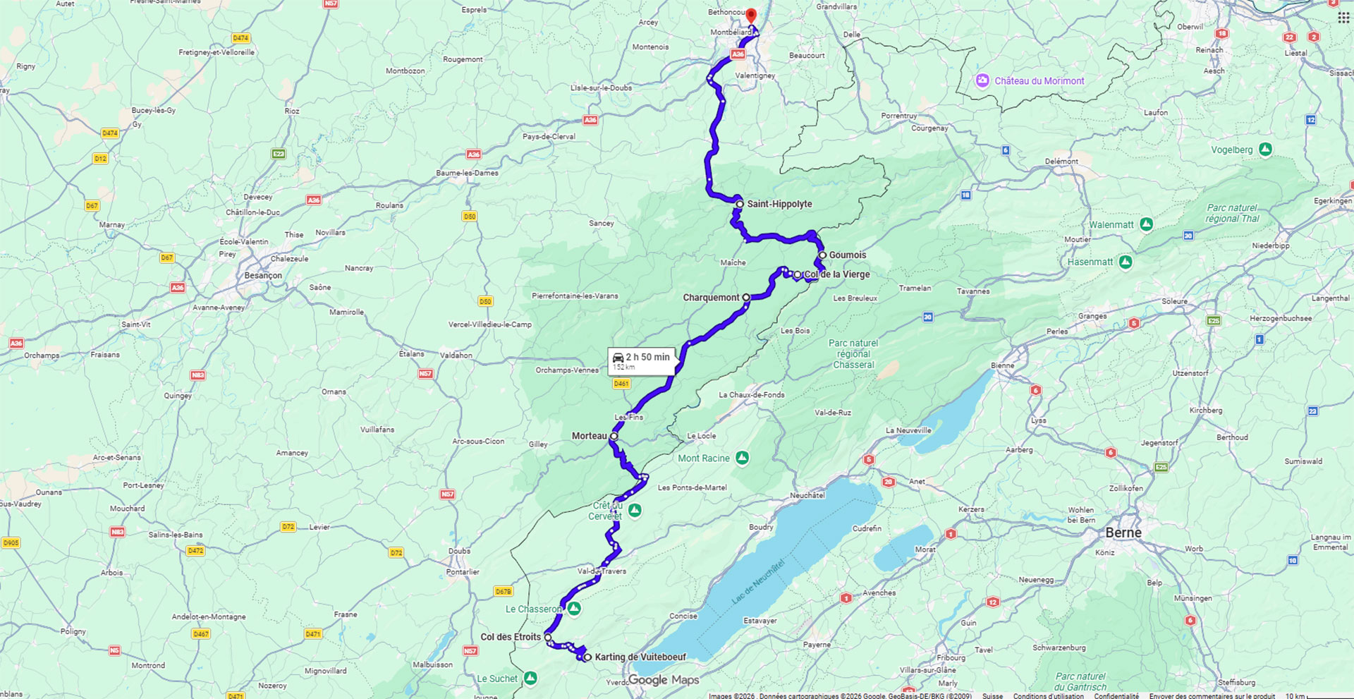 Etape 1 : Vuiteboeuf – Col des Etroits – Morteau – Charquemont – Col de la Vierge – Goumois – St-Hippolyte – Musée de l’Aventure Peugeot à Sochaux